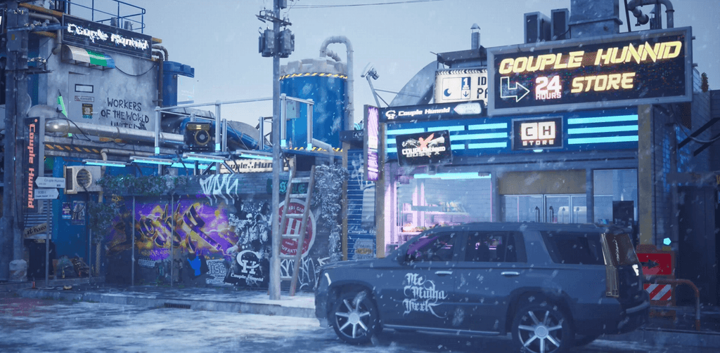 全套流程均使用UE5制作,使用了部分Kitbash 3D和Quixel的资产,贴图部分由负责平面设计的小伙伴制作